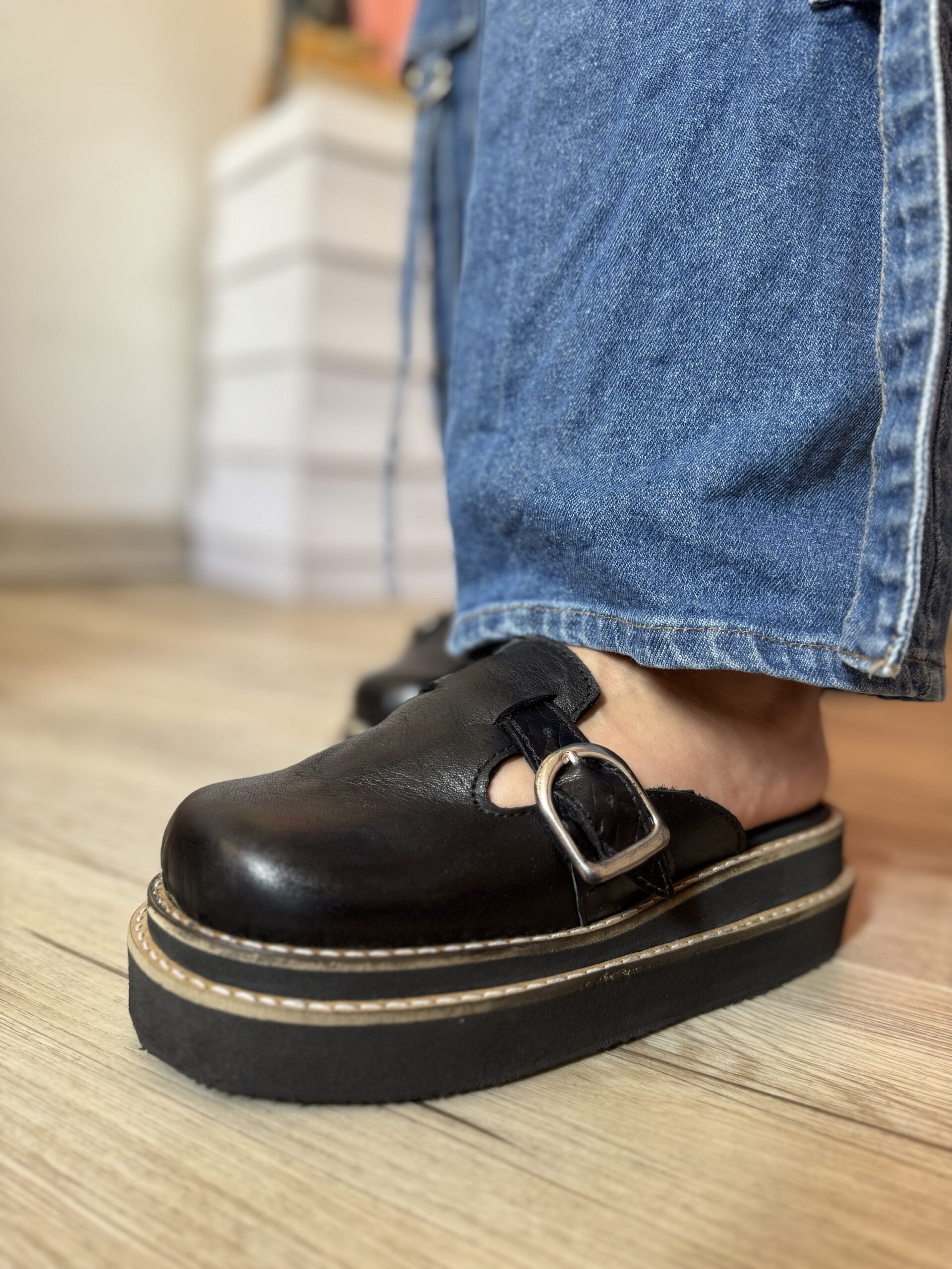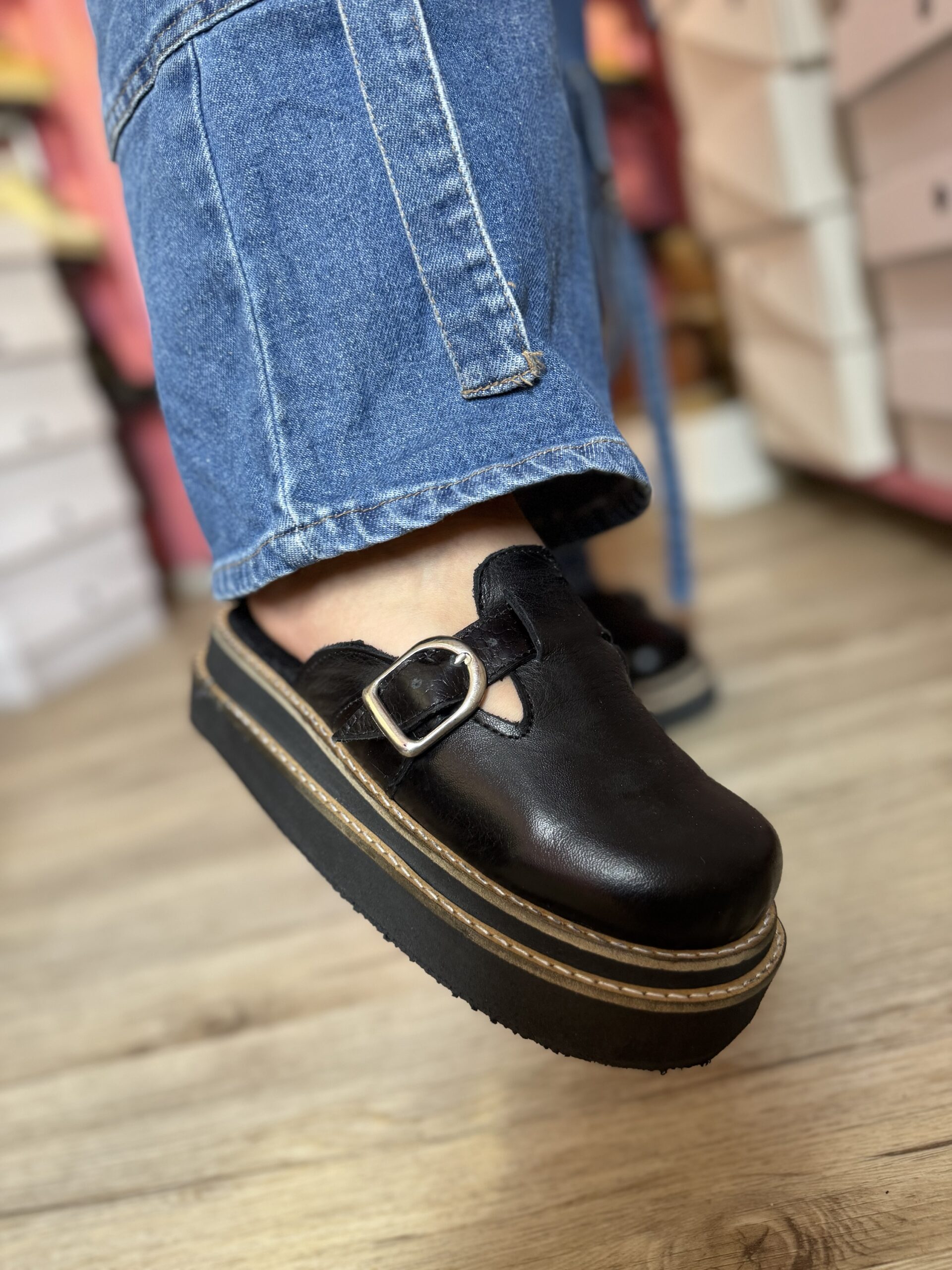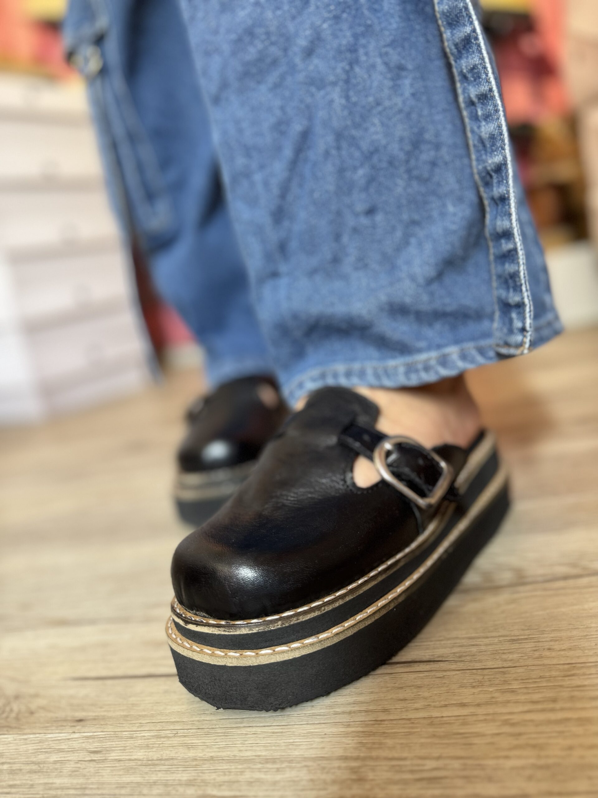 Zuecos de cuero por dentro y fuera, suela doble vira de Micro (goma) altura 4,5 cm aproximadamente
