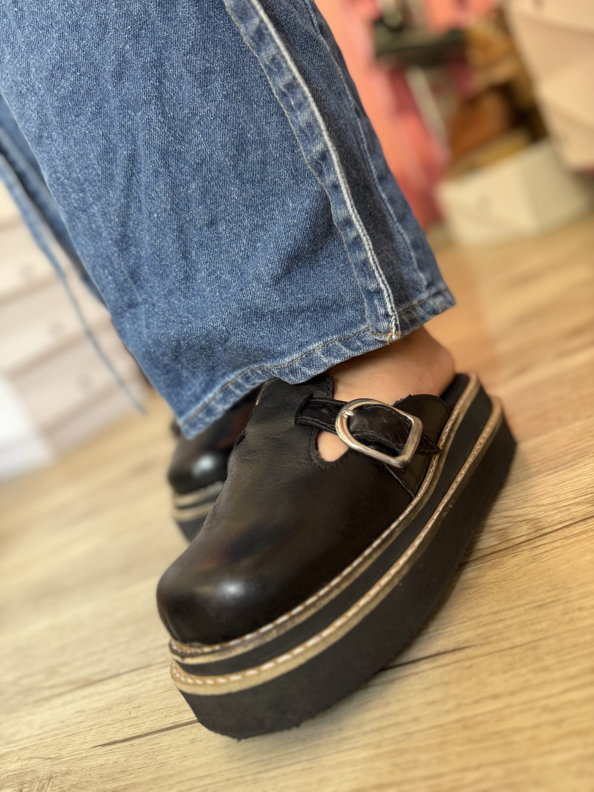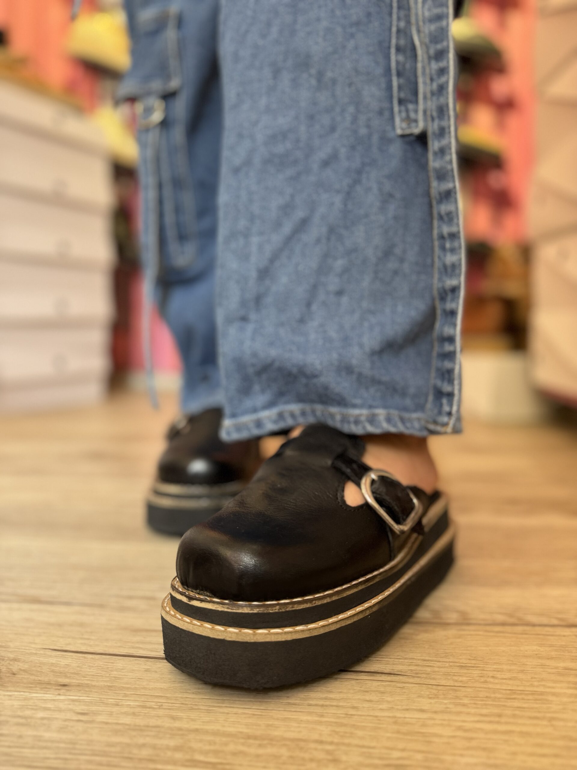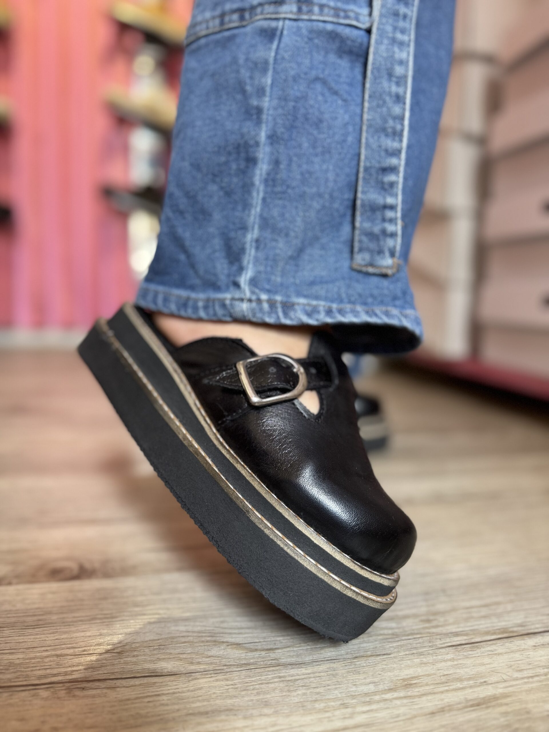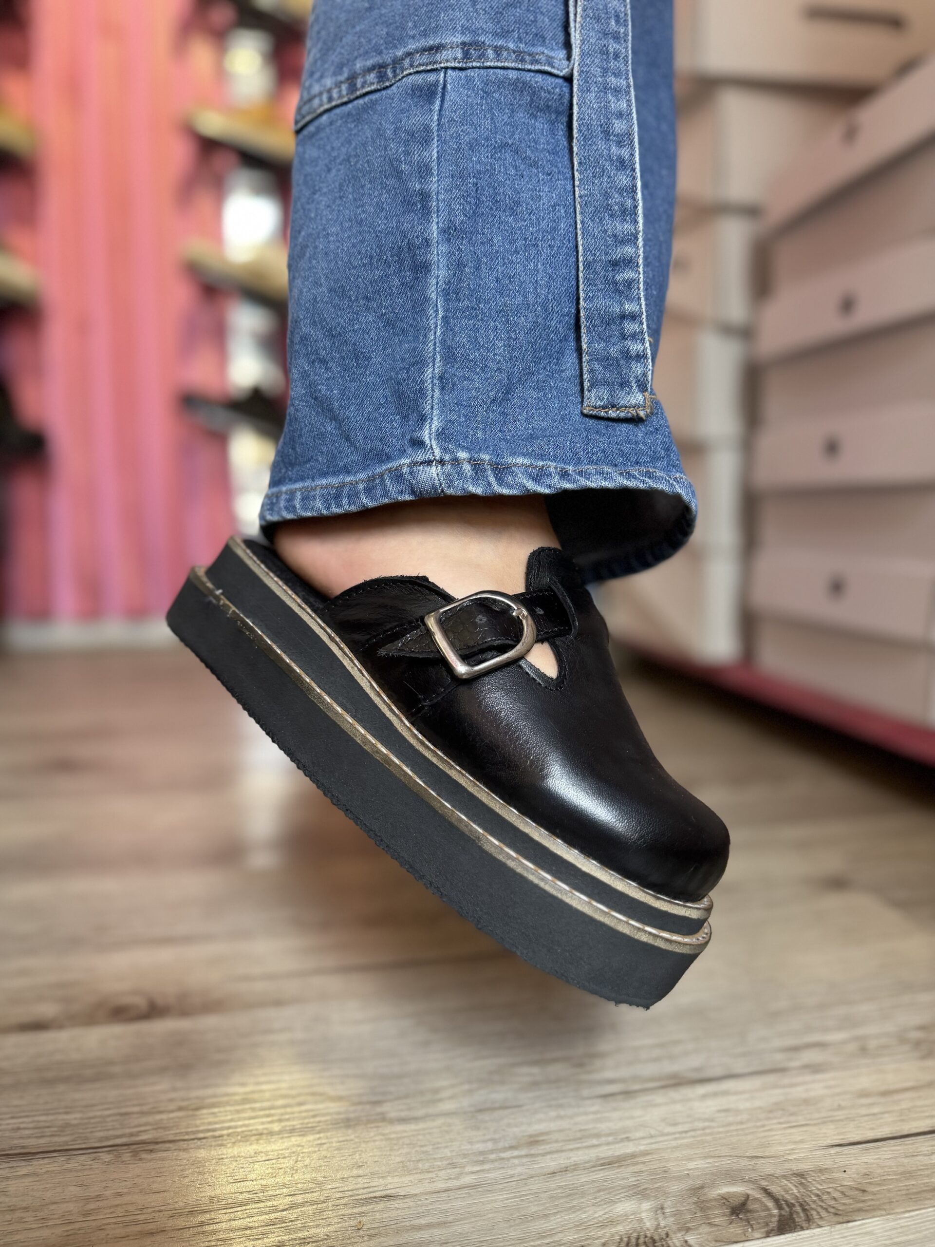 Zuecos de cuero por dentro y fuera, suela doble vira de Micro (goma) altura 4,5 cm aproximadamente