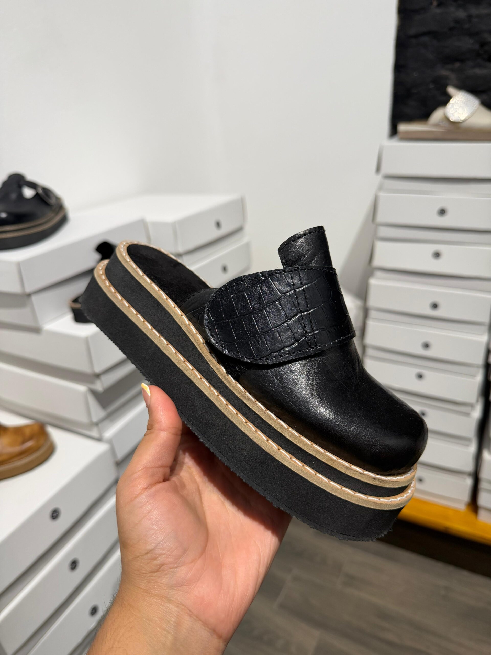 Zuecos de cuero por dentro y fuera, suela doble vira de Micro (goma) altura 4,5 cm aproximadamente